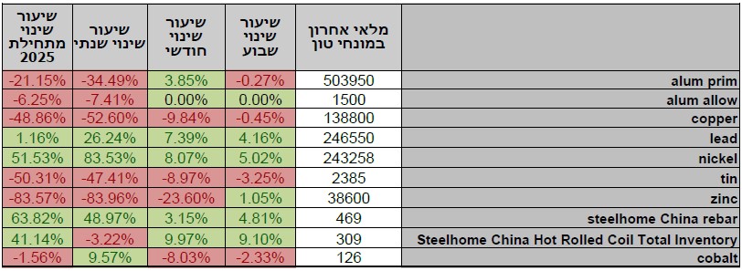 סקירת מחירי מתכות 16.10.2025