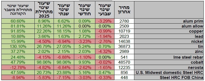 סקירת מחירי מתכות 20.11.2025 - פריקו