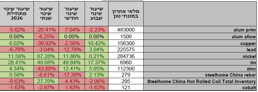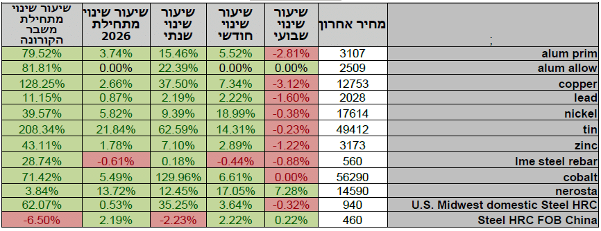 טבלת מחירי מתכות
