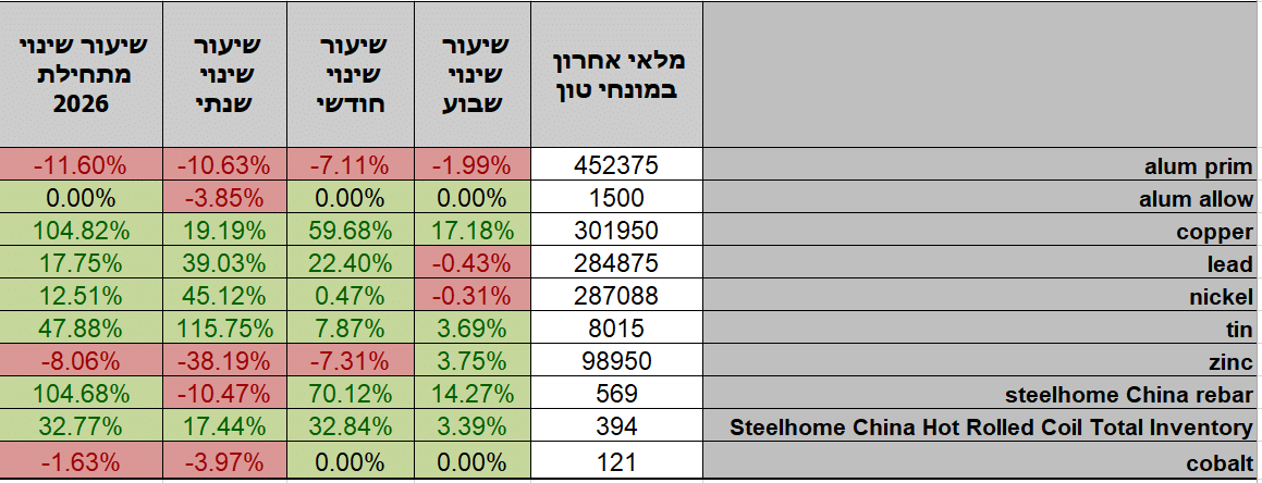 סקירת מחירי מתכות12.3.2026